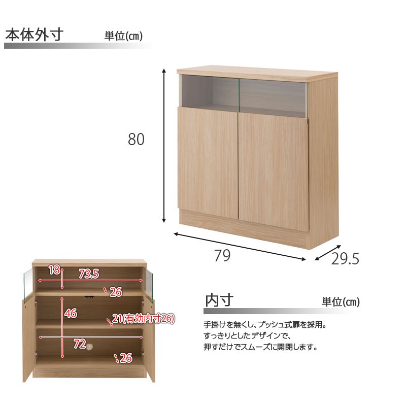 日本製 完成品 大川家具 Mtpush 幅79 奥行29.5 高さ80 リビングボード 扉タイプ ナチュラル 国産 大川家具 キッチン収納 北欧 プッシュ式 おしゃれ カウンター【送料無料】