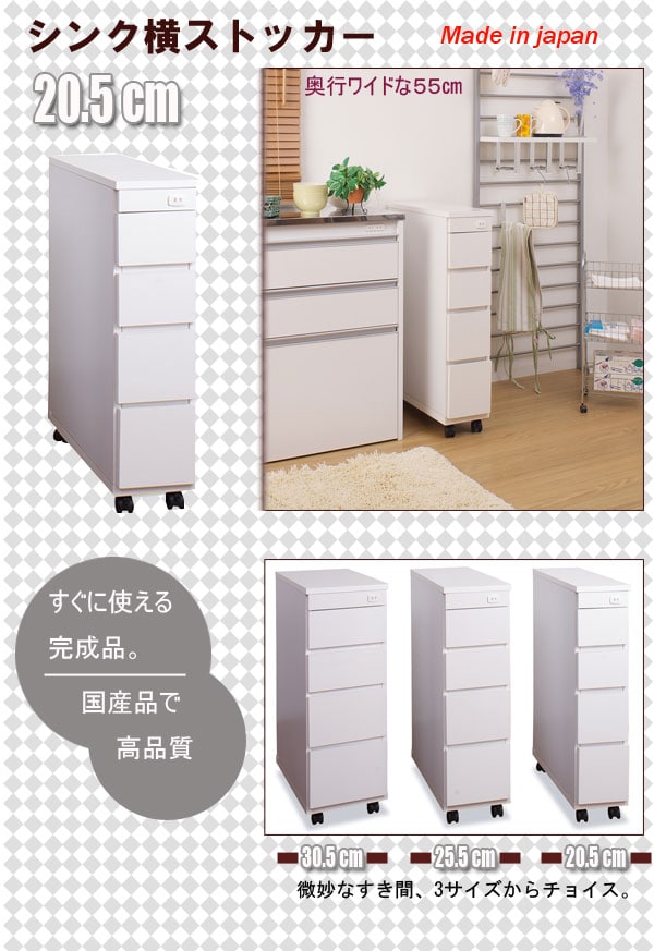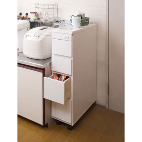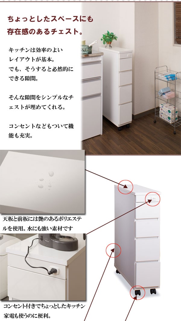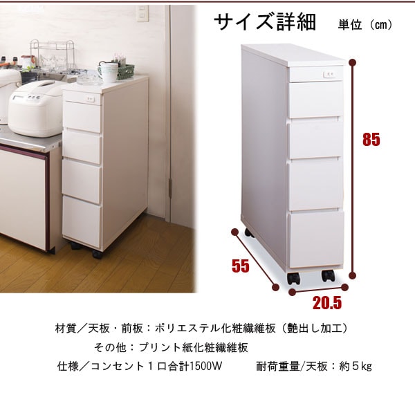日本製 完成品 シンク横 チェスト 四段 4段 幅20 20幅 収納 コンセント穴付き すきま収納 高さ85 キャスター付き 白 国産 おしゃれ【送料無料】