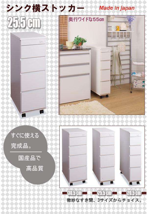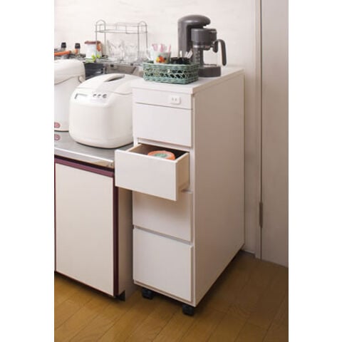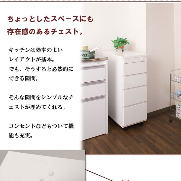 日本製 完成品 シンク横 チェスト 四段 4段 幅25.5 25.5幅 収納 コンセント穴付き すきま収納 高さ85 キャスター付き 白 国産 おしゃれ【送料無料】