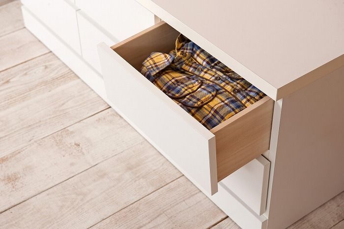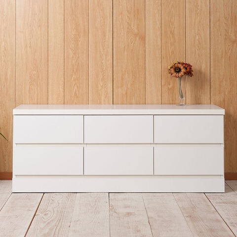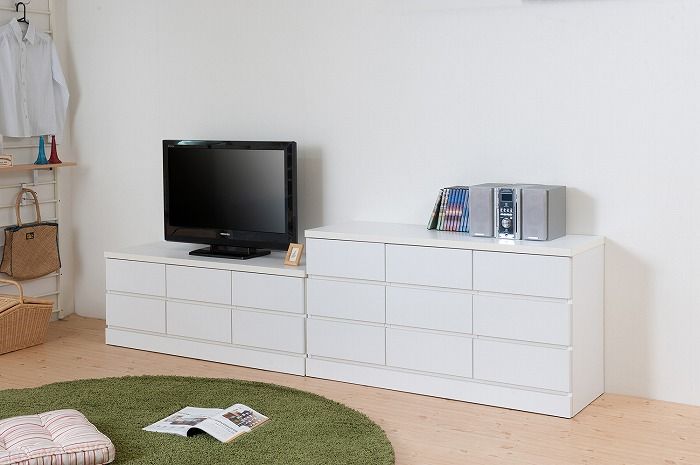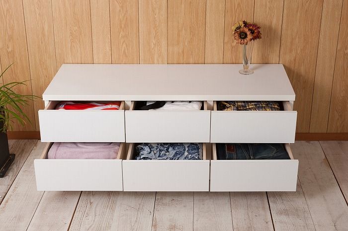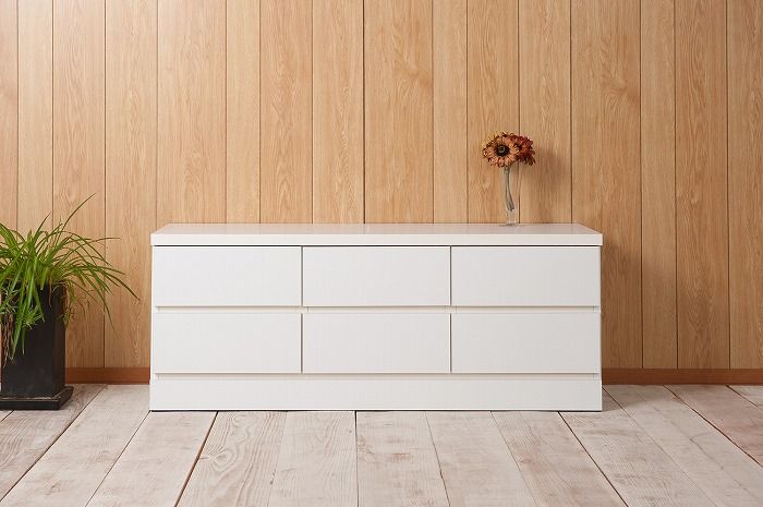 洋室や和室から子供部屋まで、どんなシーンにも溶け込むホワイトのチェスト。スタンダードなハイ・ロータイプと違い季節に合わせた収納や家族の衣類を小分けでき、重ばらず使いやすい。使い方で様々なシーンに活躍します。引出しの間には全段地板入りで強度も◎。シンプルなデザイン&機能的で長く使って頂けます。低めの設計で寝室やリビングでのTV台としても、ランドリーで着替えや下着収納としても、大活躍。真っ白のチェストは圧迫感なくそれでいて存在感のあるGOODなチェストです。