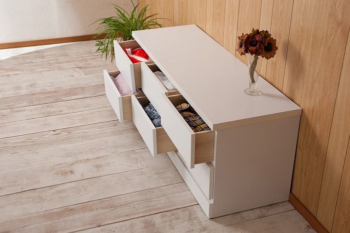 日本製 ホワイト ベンチ チェスト 幅119.5 2段 二段 6杯 ロータイプ タンス 白 完成品 洋服 モダン ワードローブ 国産 おしゃれ 北欧【送料無料】のレビュー