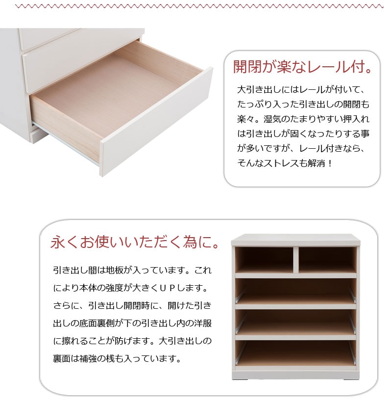 日本製 完成品 押入れ たんす 幅75cm 奥行65cm 4段 ホワイト 白 国産 チェスト ローチェスト 収納 おしゃれ 高さ80 引き出し 北欧【送料無料】のレビュー