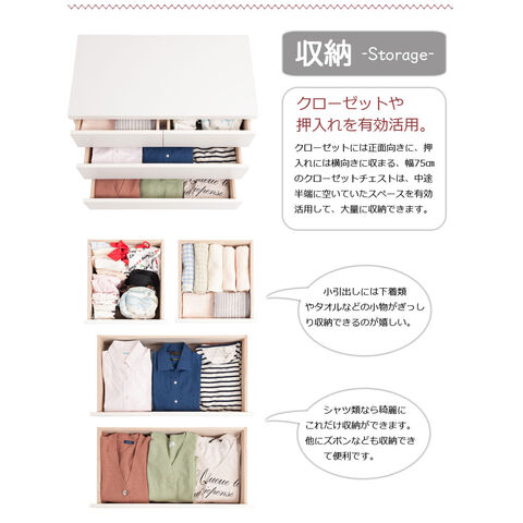 クローゼットチェスト 幅75cm 3段 ホワイト 国産 完成品チェスト クローゼットチェスト 幅75 3段 ローチェスト タンス たんす【送料無料】のレビュー