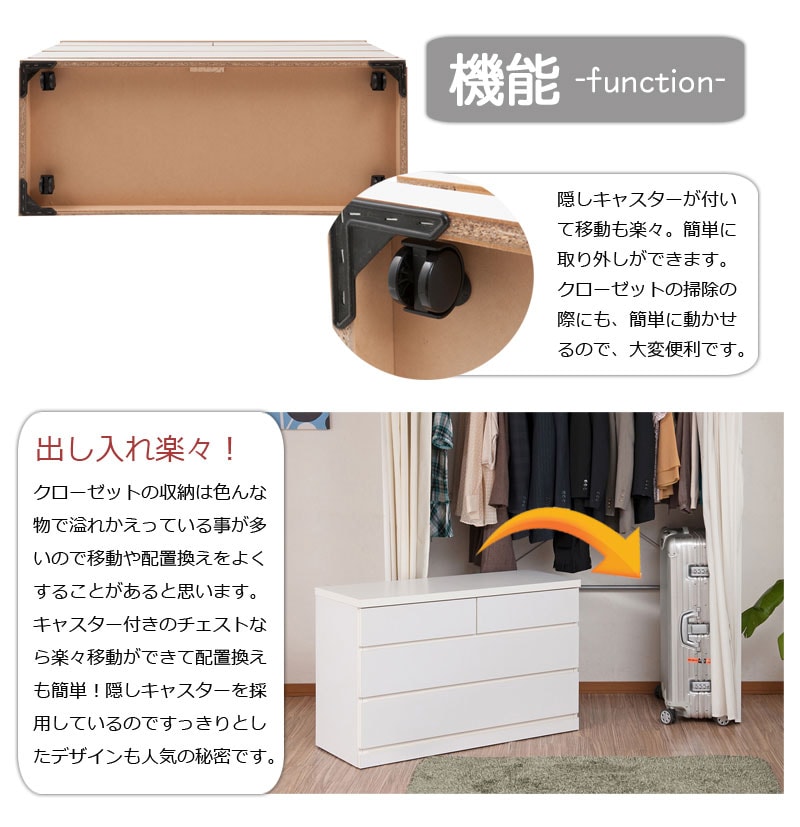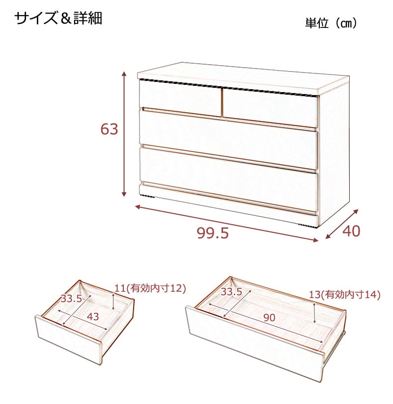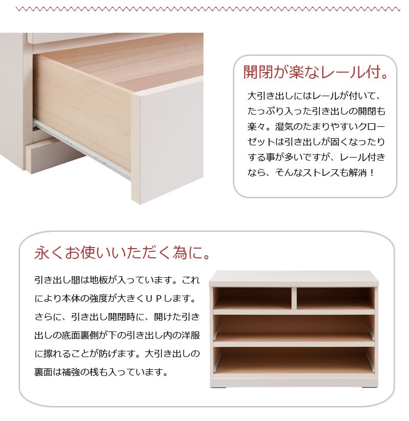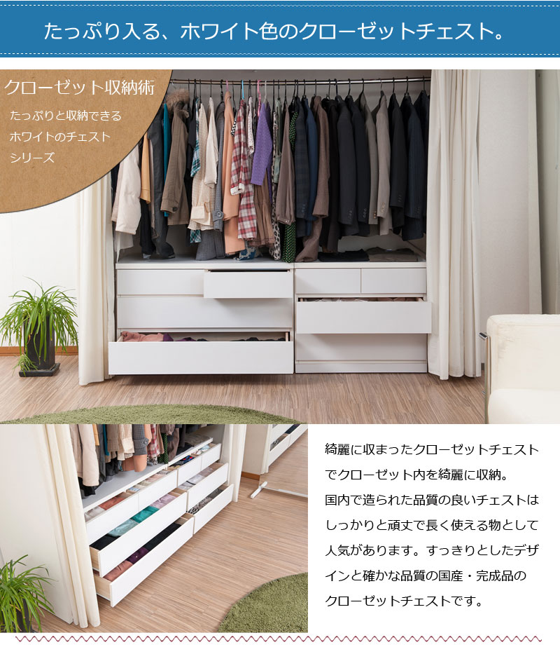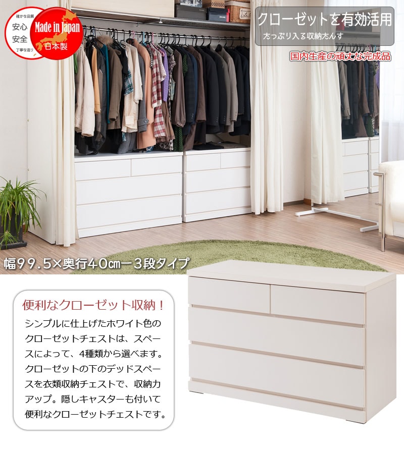 クローゼットチェスト 幅99.5cm 3段 ホワイト 国産 完成品チェスト クローゼットチェスト 幅100 3段 ローチェスト タンス たんす【送料無料】