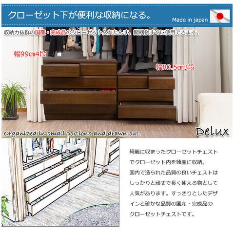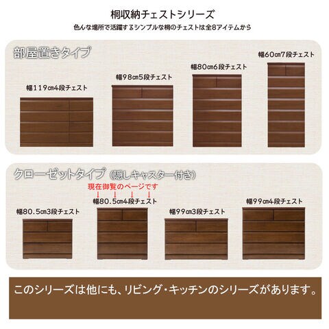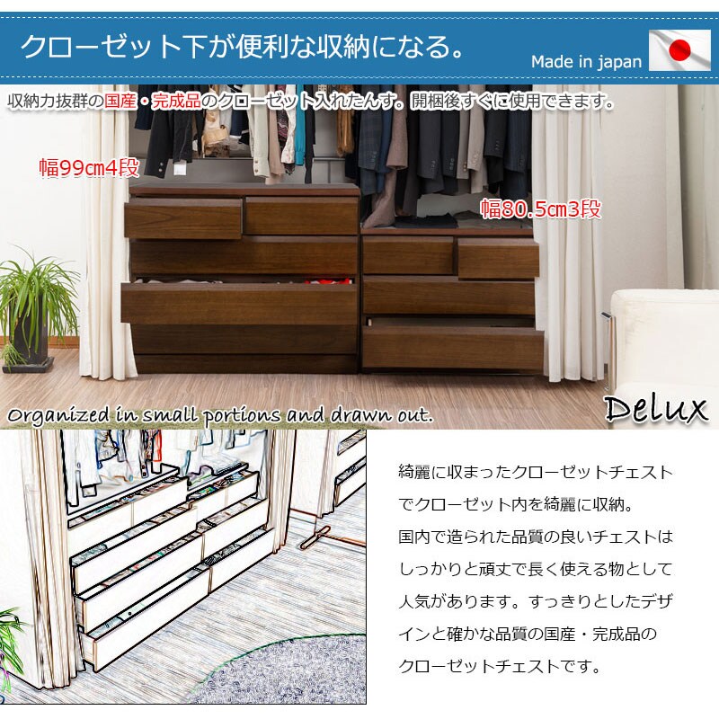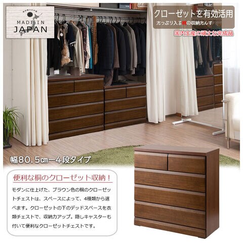 日本製 国産 クローゼットチェスト 幅80.5 4段 ダークブラウン チェスト 四段 クローゼット 収納 幅80.5cm 80.5cm幅 完成品 キャスター付き 北欧 木製 シンプル 天然木 桐 衣類収納 茶【送料無料】