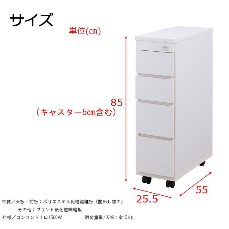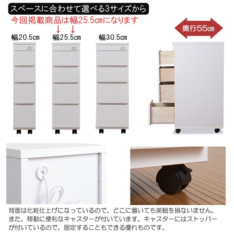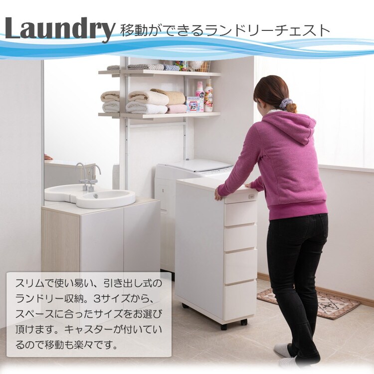 ランドリーチェスト 幅25.5 4段 キャスター付き ホワイト スリム コンパクト ランドリー収納 収納ボックス 収納ケース 洗面所 隙間収納 すき間 洗濯機 デッドスペース 引き出し サニタリー 隙間収納【送料無料】