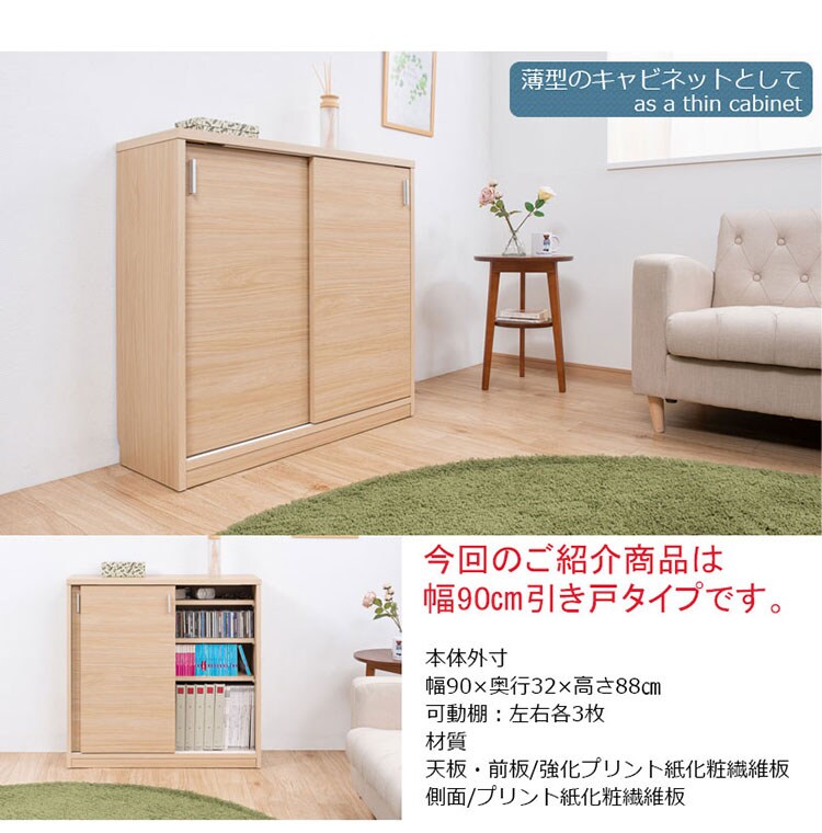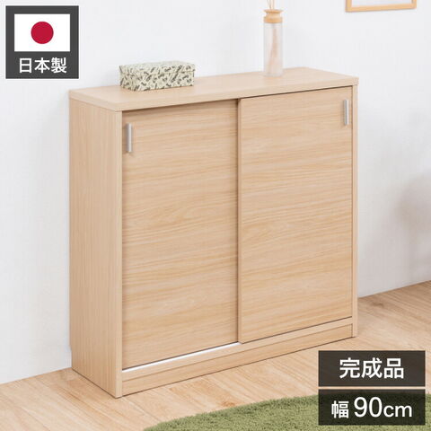 FINEシリーズ カウンター下収納 幅90cm 引き戸タイプ マリンナチュラル 日本製 完成品 キッチン カウンター下 収納 本棚 食器棚 ミニ食器棚 カウンター収納 薄型収納 ラック【送料無料】