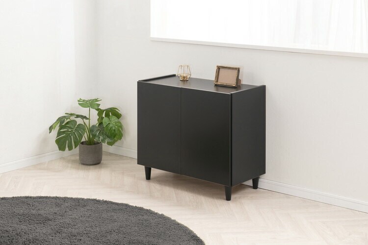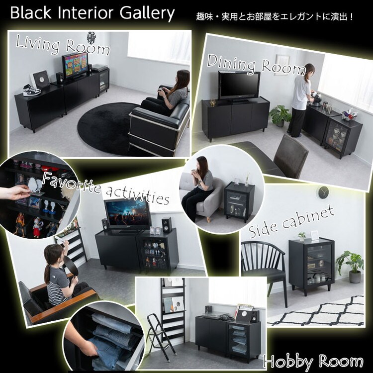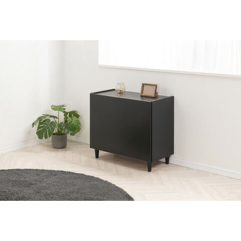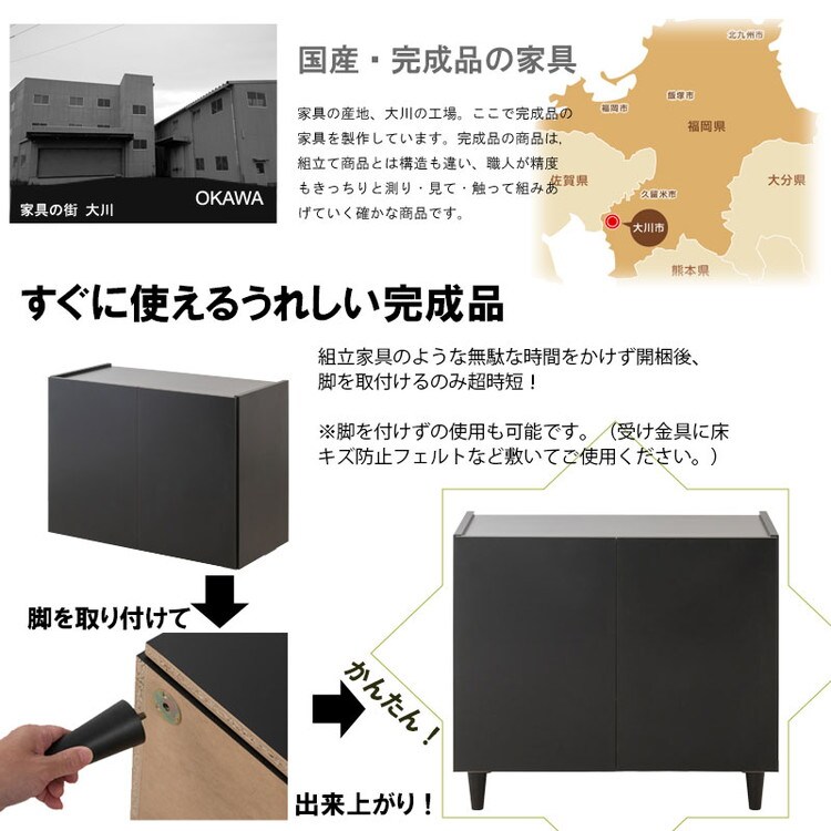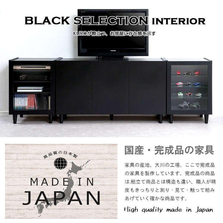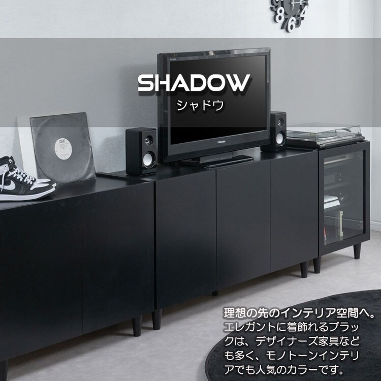 SHADOW 脚付きブラックキャビネット 幅80 日本製 木製 収納棚 収納 棚 ラック 扉付き ローボード 本棚 サイドボード ディスプレイラック サイドボード ルーター収納 レコードラック【送料無料】
