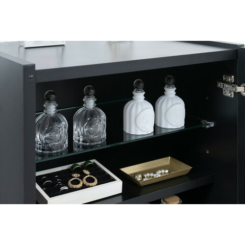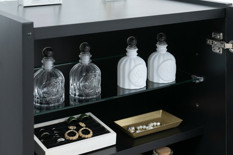 扉の中は、収納物に合わせて高さを変えることができる棚板が幅80cmには2枚、幅118cmには大小各2枚付いています。