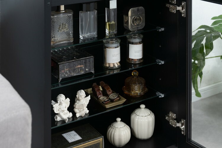 幅49.5cmのガラスキャビネットは、使い方様々で、デッキ収納や趣味・推し活などガラス扉でお洒落に飾って♪可動棚3枚付きで、収納にあわせて様々な用途で使えます。