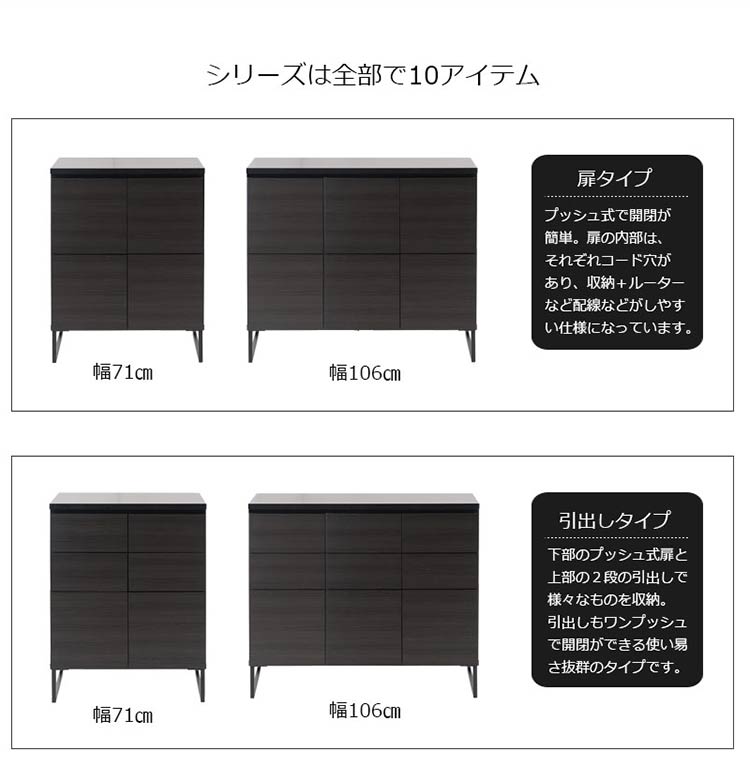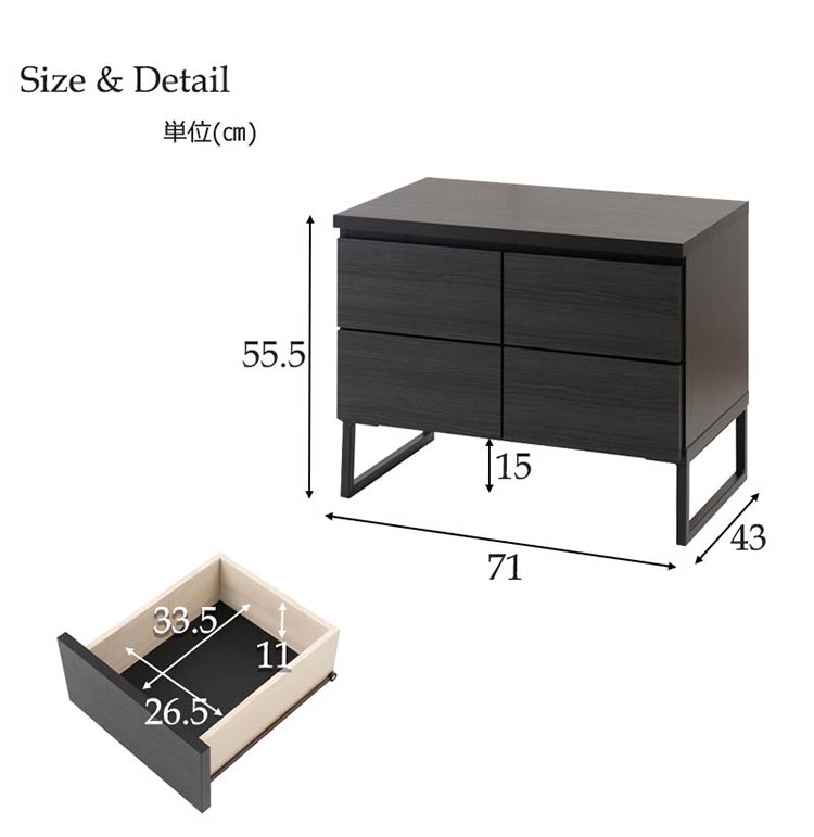 完成品 日本製 ブラック スクエア キャビネット 引出し ベンチタイプ 幅71 スリム 国産 2列 2段 収納 おしゃれ モノトーン 木製 スリム 大容量 アンティーク 北欧 スチール【送料無料】
