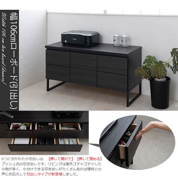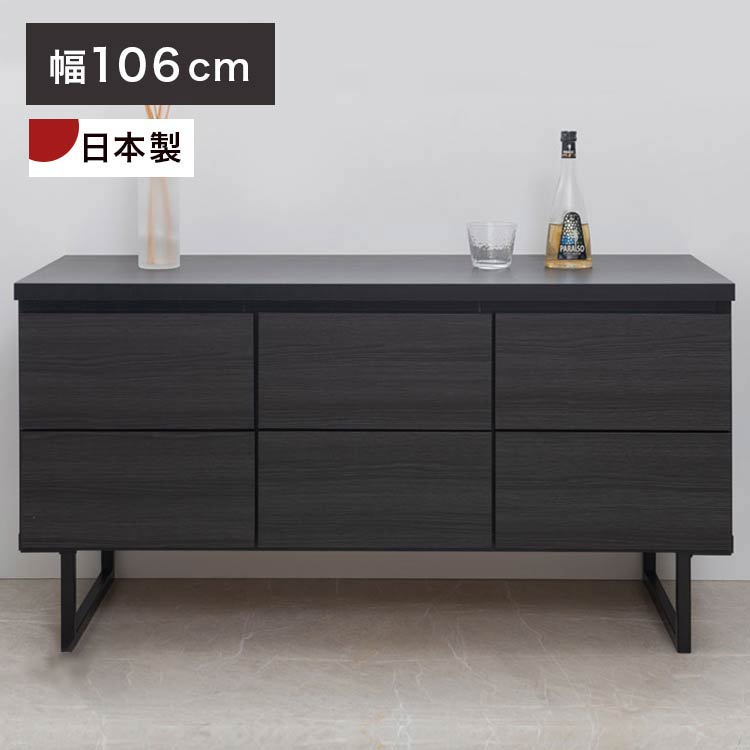 完成品 日本製 ブラック スクエア キャビネット 引出し ベンチタイプ 幅106 ワイド 国産 3列 2段 収納 おしゃれ モノトーン 木製 スリム 大容量 アンティーク 北欧 スチール【送料無料】