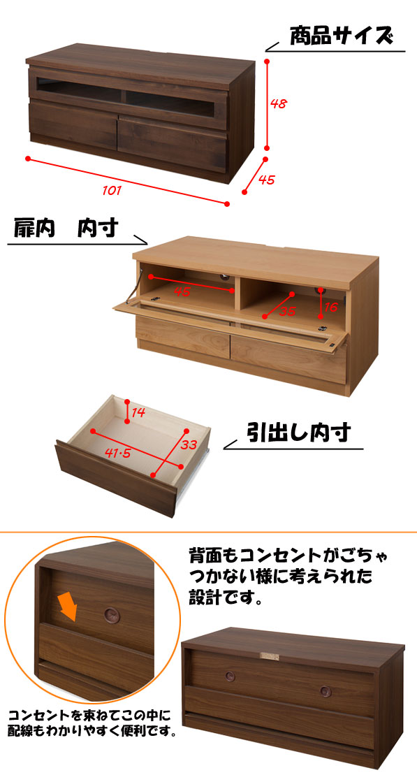 完成品 アルダー材 テレビボード 天然木 日本製 木目調 木製 天然木 ナチュラル 茶 幅101 コンパクト スリム おしゃれ ヴィンテージ 国産【送料無料】