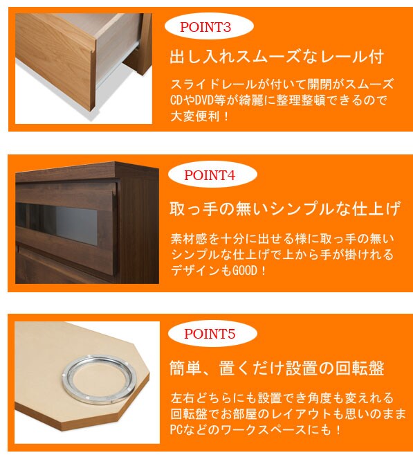 天然木テレビボード回転盤付 101cm幅 ダークブラウン色【送料無料】【日本製】 【完成品】
