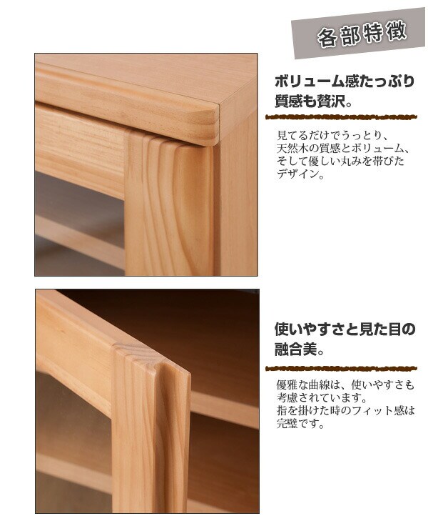 | 材質/前板:天然木パイン材(ウレタン樹脂塗装)、その他:プリント紙化粧繊維板 商品重量:47kg 日本製 |