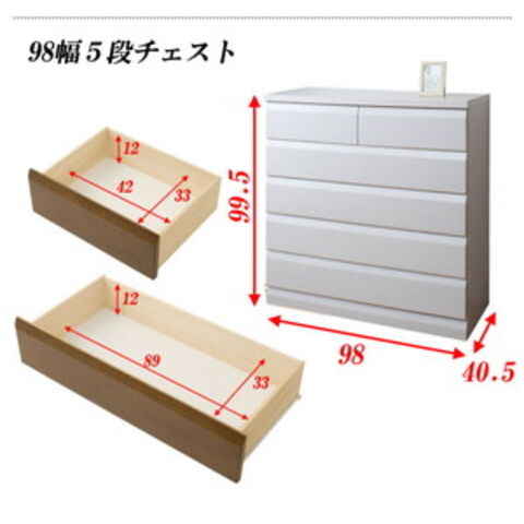 | 本体:(約)幅98×奥行40.5×高さ99.5cm 引出し内寸:小/(約)幅42×奥行き33×深さ12 大/(約)幅89×奥行き33×深さ12 |