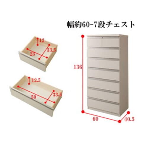 完成品 日本製 チェスト 7段 幅60 スリム ハイタイプ 大容量 白 ホワイト 60幅 高さ136 おしゃれ 収納 北欧 たんす タンス 衣類収納【送料無料】のレビュー