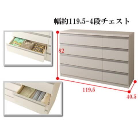 日本製 完成品 大川家具 デザイン チェスト 幅119.5 4段 四段 大容量 ワイド 収納 衣類収納 おしゃれ 白 組み立て不要 レール式 国産【送料無料】