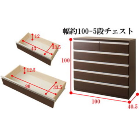 | 本体:(約)幅100×奥行40.5×高さ100cm 引出し内寸:小/(約)幅43×奥行き33.5×深さ12 大/(約)幅90×奥行き33.5×深さ12.5 |