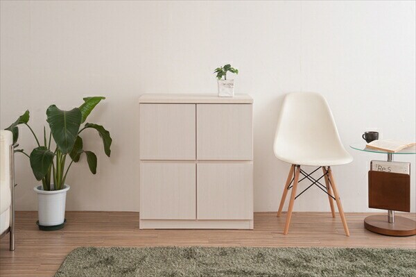 日本製 完成品 スクエア キャビネット 幅70 高さ80 おしゃれ スリム 大容量 収納 国産 木目調 白 木製 アンティーク ナチュラル 2段 二列【送料無料】