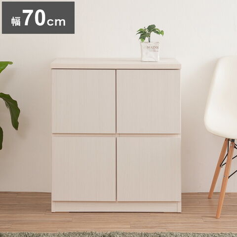 ■商品について/リビングや色んな場所でごちゃつく物を綺麗に大量収納でき、どんなお部屋にも合うデザイン・色合いのスクエアキャビネットが登場!シンプルなデザインながらも、様々な便利機能を兼ね備えたキャビネットです。木の質感をリアルに表現しているこだわりのシートを使用しています。モノトーンや北欧のテイストのお部屋になじむホワイト色と、カントリーなどのテイストに合うナチュラル色の2色展開。70幅と104幅があり、全部で7種類のサイズからお選びいただくこともできる、豊富なバリエーション!単体でのご使用や、シリーズで揃えてのご使用など様々な使い方ができます♪シンプルでコンパクトなデザインながらも、中はたっぷり収納できる大容量。A4ファイルや書類が収納可能な奥行に、天板はテレビを乗せても大丈夫な作りでテレビ台としてもご使用可能。最下部収納箇所の背面には、コード穴があるので、ごちゃつく配線などをすっきりまとめることができ、ルーターやゲーム機などを収納可能な内寸高さになっています。リビングはもちろん、書斎や寝室、ランドリーなどでも活躍する便利なスクエアキャビネットです。7タイプ・2カラーの14種類からお選びいただけます。