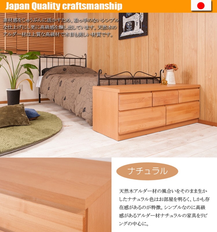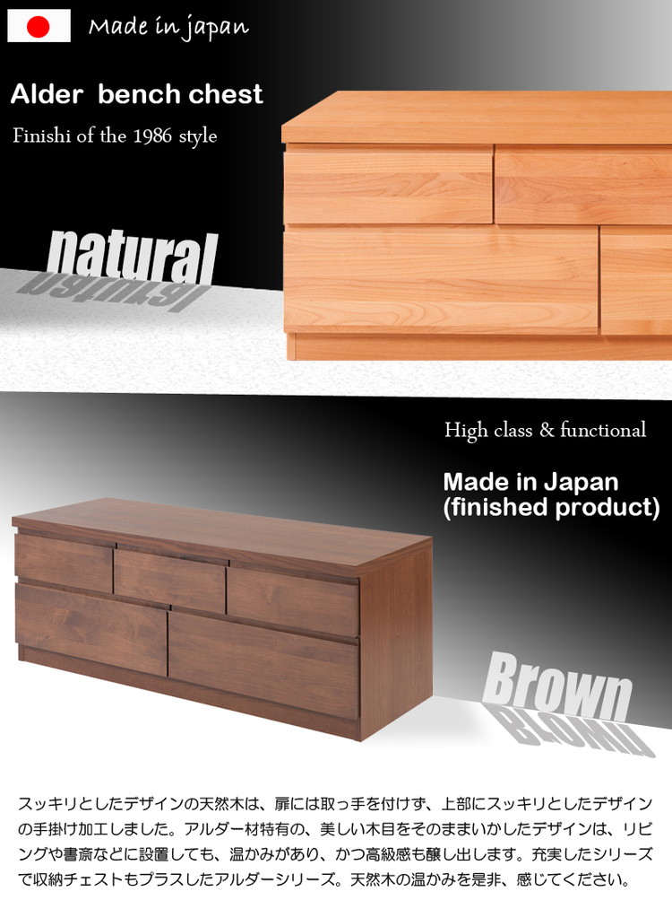 天然木アルダーチェスト 幅119.5cm ベンチ ナチュラル 国産 完成品 ベンチチェスト タンス モダン 引出しTVボード TV台【送料無料】