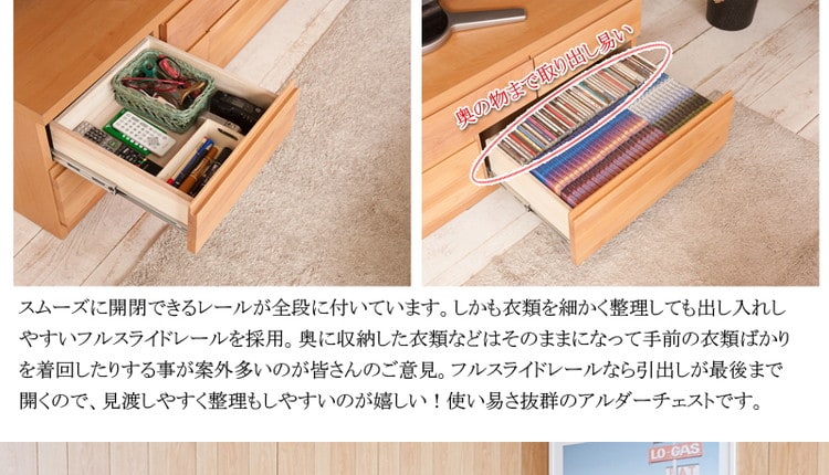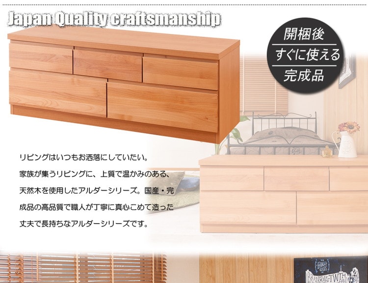 天然木アルダーチェスト 幅119.5cm ベンチ ナチュラル 国産 完成品 ベンチチェスト タンス モダン 引出しTVボード TV台【送料無料】のレビュー