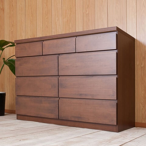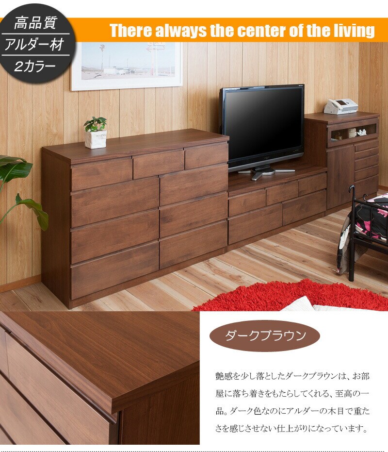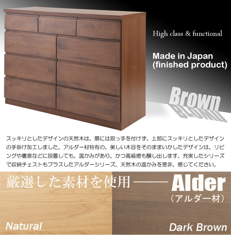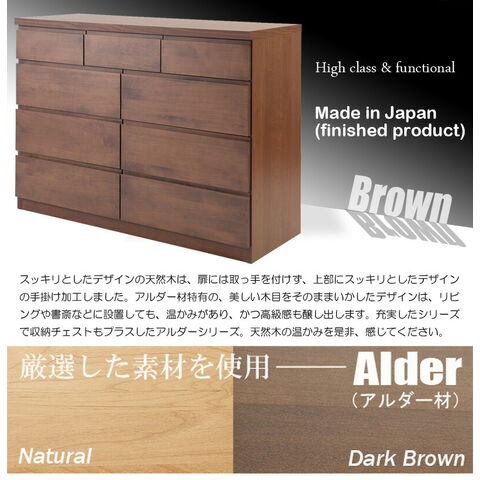 日本製 国産 完成品 天然木アルダー材 無垢板 幅120 4段 ハイチェスト タンス たんす 洋服タンス モダン ロータイプ ダークブラウン【送料無料】