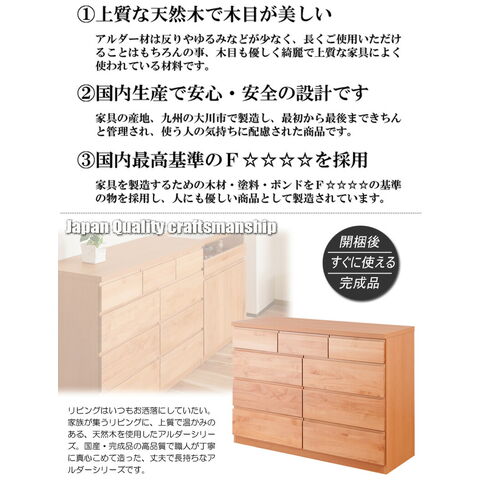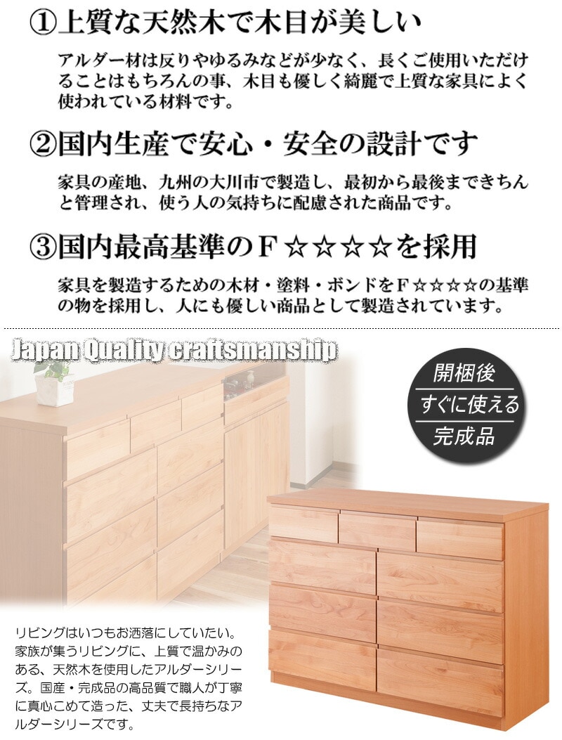 木肌溢れる天然木のアルダーシリーズは素材も機能も妥協なく国内で丁寧に製造された商品です。