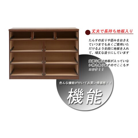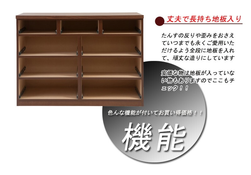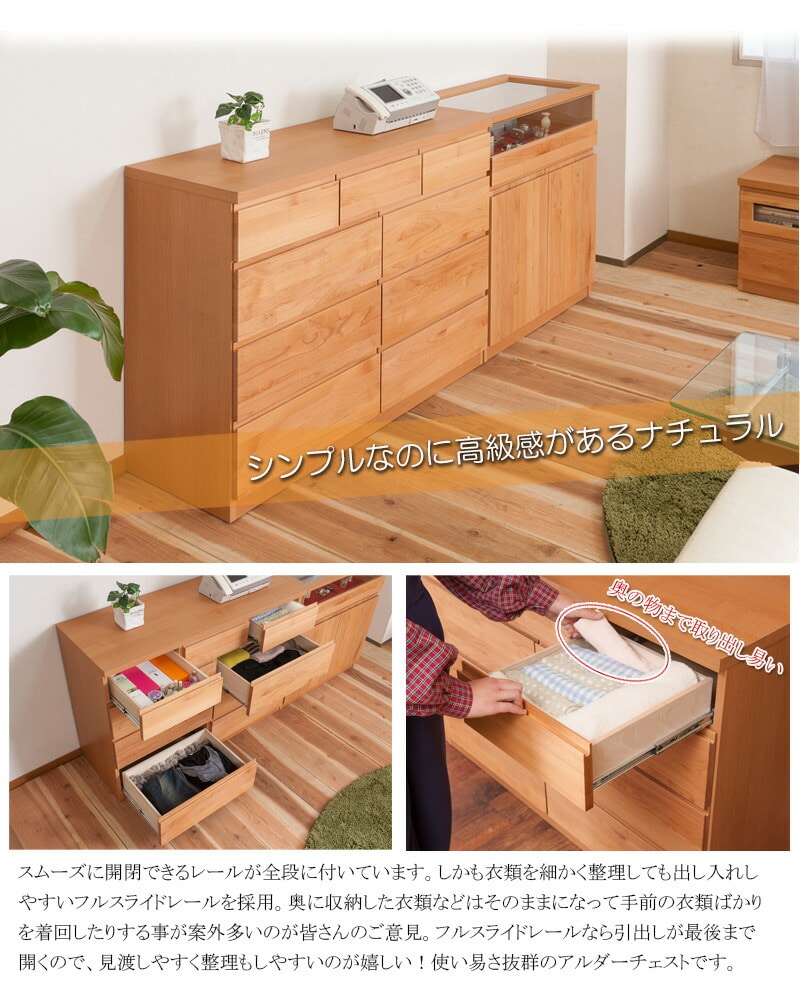 全ての引出しに使いやすくする為にフルオープンスライドレールを採用し、衣類やDVD、更に小物を収納するときも、引出しがフルに出てきますので、奥の物の整理や出し入れが簡単にできるようになっています。
