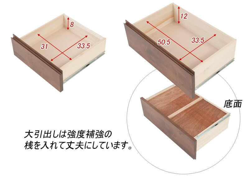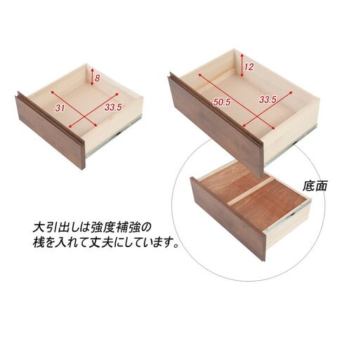 ■引出し内寸/小(約)幅31×奥行33.5×深さ8(有効10.5)cm、大(約)幅50.5×奥行33.5×深さ12(有効16)cm