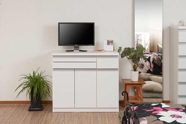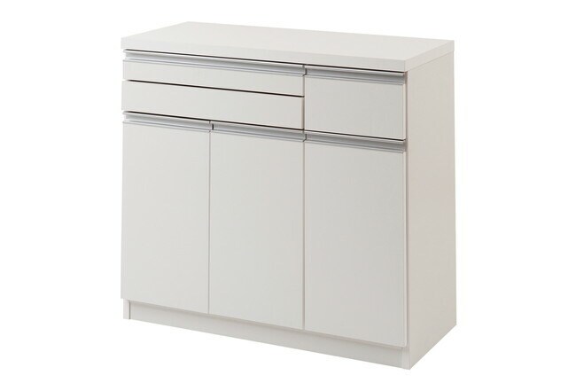 ●商品サイズ/本体:(約)幅89.5×奥行40.5×高さ82cm、●内寸/上部スライド棚:(約)幅52.5×奥行35(前板+9)×高さ14cm、左扉部:(約)幅50×奥行35.5×高さ47.5cm、右扉部:(約)幅23×奥行36.5×高さ51.5cm●引出し内寸/左引出し部:(約)幅50×奥行き33.5×深さ3.5cm、右引出し部:(約)幅20.5×奥行き33.5×深さ12cm、●可動棚/大:1枚、小2枚