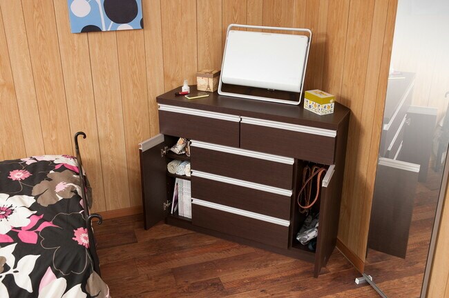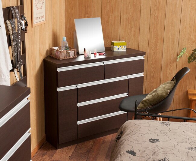 ●商品サイズ/本体:(約)幅100.5×奥行44.5×高さ82cm、●内寸/左扉部:(約)幅16×奥行22/39×高さ52cm、右扉部:(約)幅16×奥行22/39×高さ46(パイプ下)cm、上部左右引出:(約)幅22×奥行き33.5×深さ12(有効14)cm、上部左右引出横オープン:(約)幅16×奥行き22/39×高さ16cm、中央引出:(約)幅51.5×奥行き33.5×深さ12(有効14)cm、●可動棚/2枚