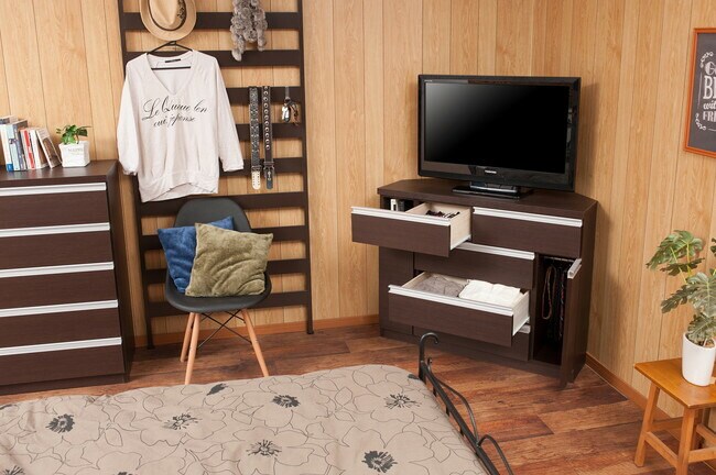 日本製 完成品 コーナーチェスト ミドルボード 国産 茶 ダークブラウン 国産 幅100 おしゃれ モダン 収納 テレビ台 ラック チェスト 4段【送料無料】
