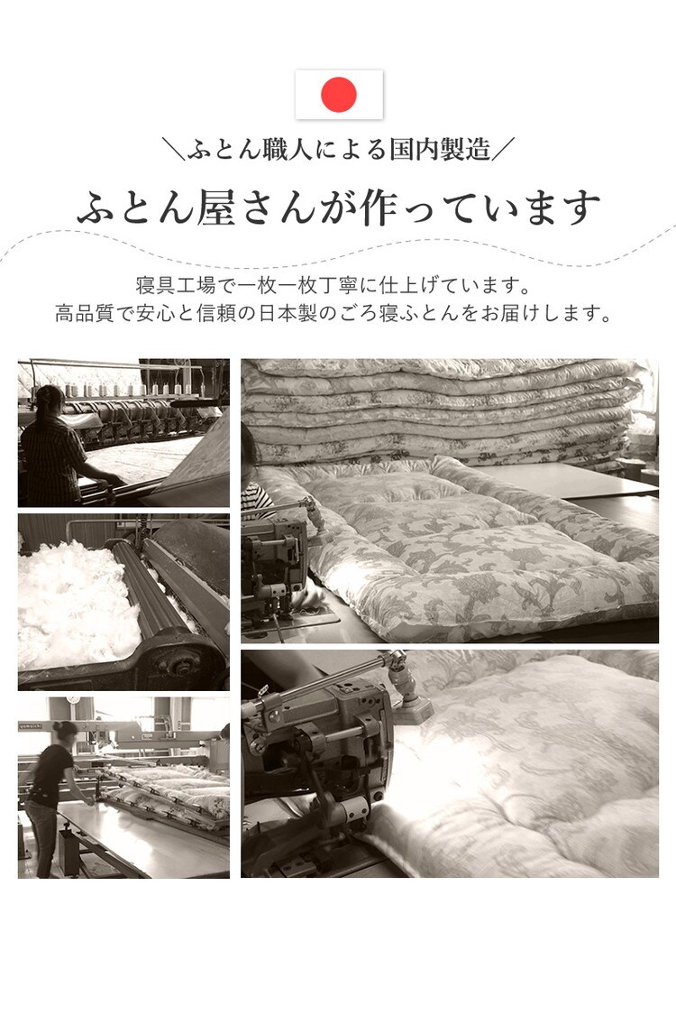 固わた三層構造:しっかりとした「固綿」を中綿で挟むことで底付き感を軽減し、へたりにくくしっかりとした寝心地を実現しました。