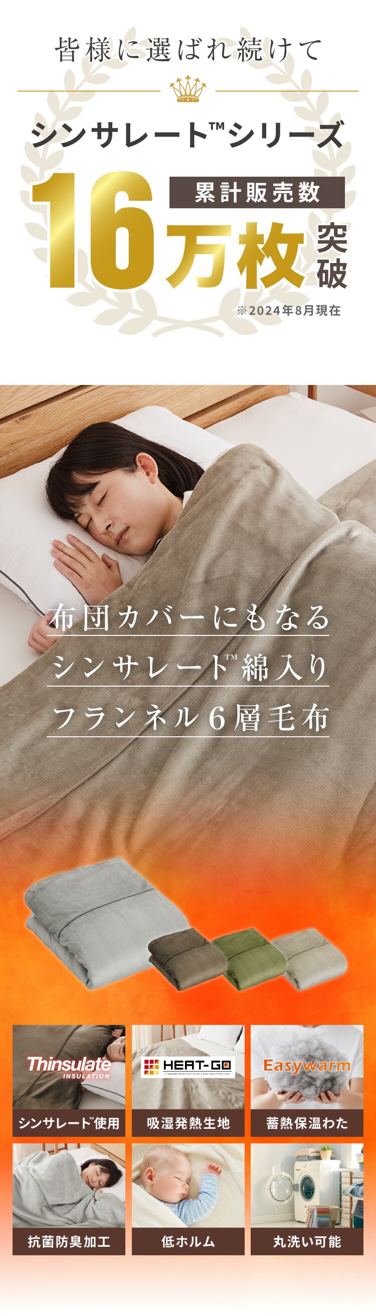 6層毛布 布団カバーにもなる毛布 シンサレート シングル セミダブル ダブル ブランケット 掛け布団カバー フランネル 保温 蓄熱 吸湿 発熱 断熱 軽い 冬用掛け布団 冬用 布団 洗える 【送料無料】