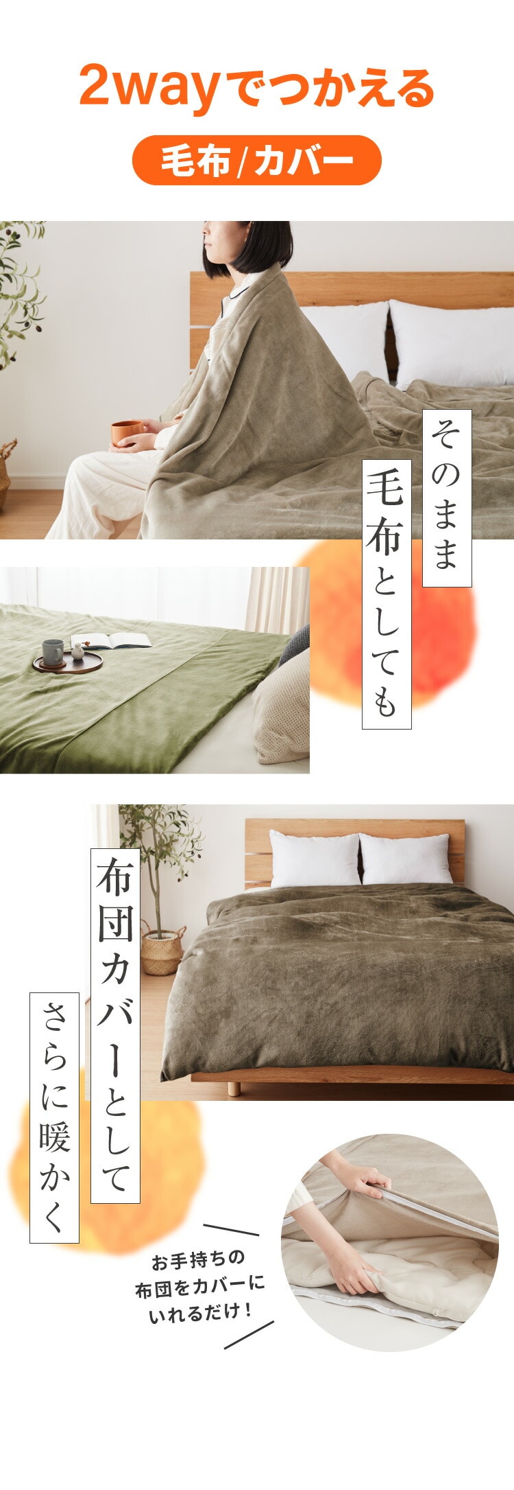 毛布単体としてもお手持ちのお布団の保温力UPにも使用できます。