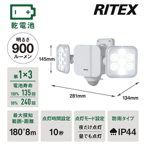 ムサシ 人感センサーライト 屋外 防犯ライト 乾電池式 5W×2灯 フリーアーム式LED乾電池センサーライト LED-270 自動点灯 人感センサー 強盗対策 防犯灯 防犯グッズ RITEX【送料無料】