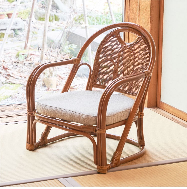 軽くて丈夫な天然ラタンを使用し、座卓テーブルで使いやすい椅子です。