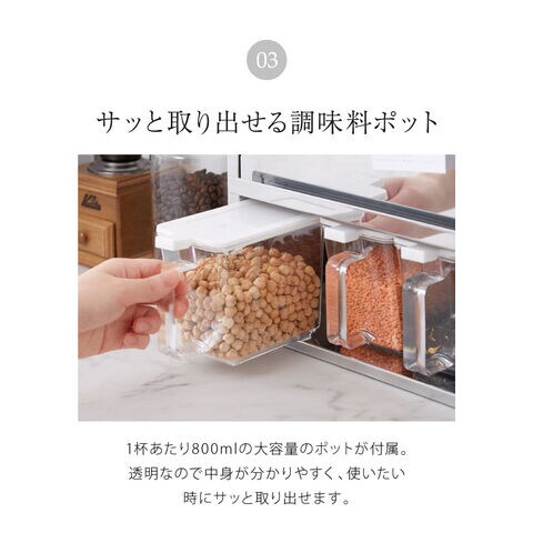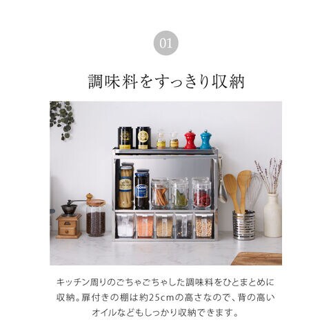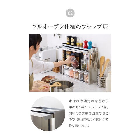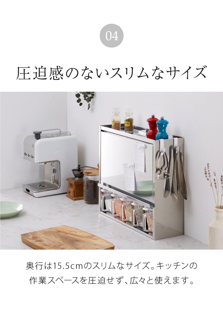 調理スペースを確保できるコンパクトでたくさんのスパイスが収納できるラック。