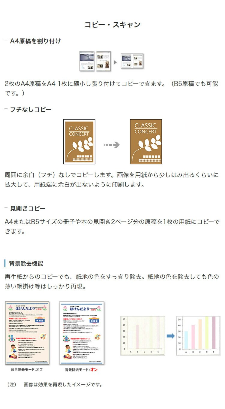 (注)四辺フチなしコピー、四辺フチなし全面印刷は、コピー原稿、またはソフトウェアで作成した用紙サイズよりわずかに拡大して印刷します。そのため、用紙からはみ出た部分は印刷されません。本番の印刷前に試し印刷をすることをお勧めします。