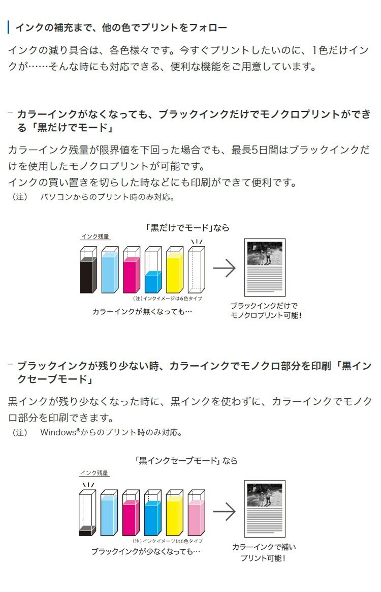 (注8)購入直後のインク初期充填では、プリントヘッドノズル(インク吐出孔)の先端部分までインクを満たして印刷できる状態にするため、その分インクを消費します。そのため、2回目に取り付けるインクカートリッジよりも印刷できる枚数が少なくなることがあります。