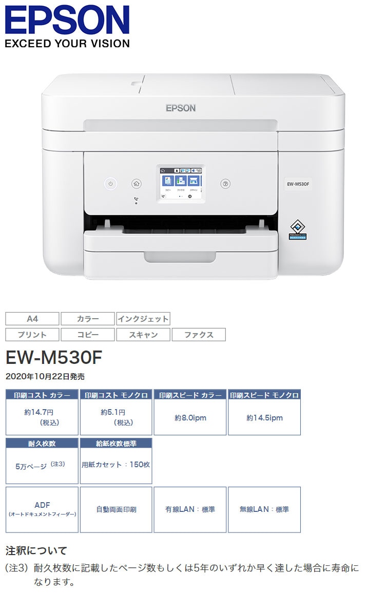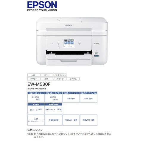 エプソン A4カラーインクジェット複合機 EW-M530F FAX機能付き ビジネス EPSON【送料無料】