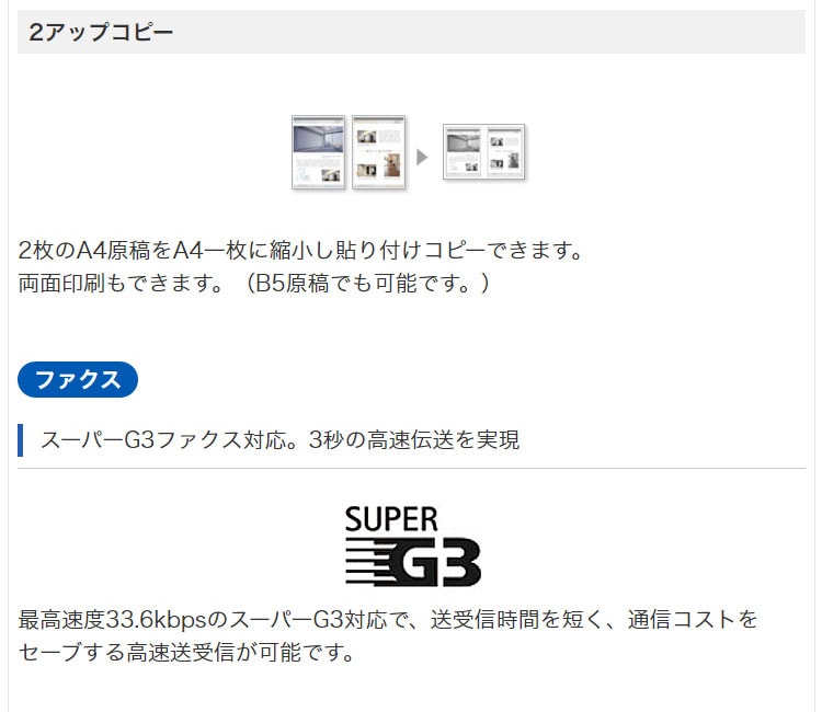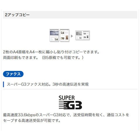 ・A4モノクロ:約11ipm、カラー:約5.5ipm