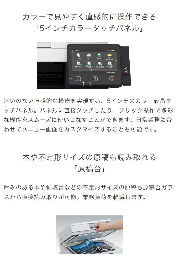 ADF(自動原稿送り装置)A4/B5/A5/レター/リーガル(最大215.9×355.6mm、最小139.7×128mm)