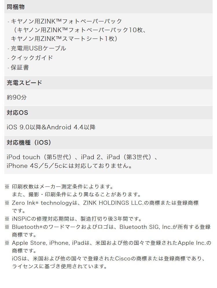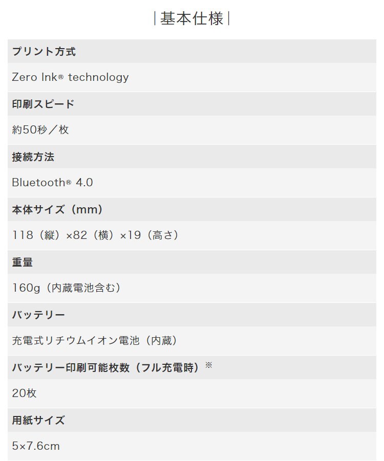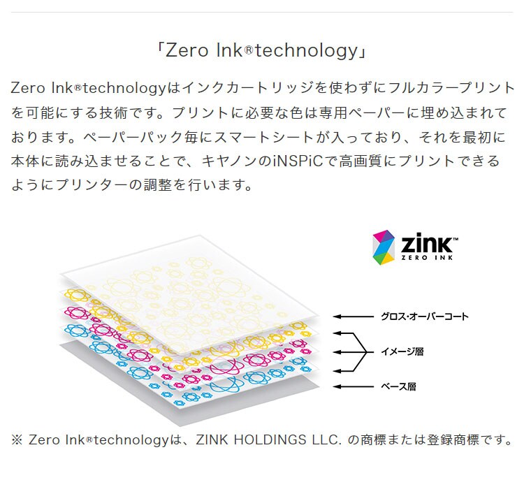 ※Zero Ink(R) technologyは、ZINK Holdings LLCが所有しています。