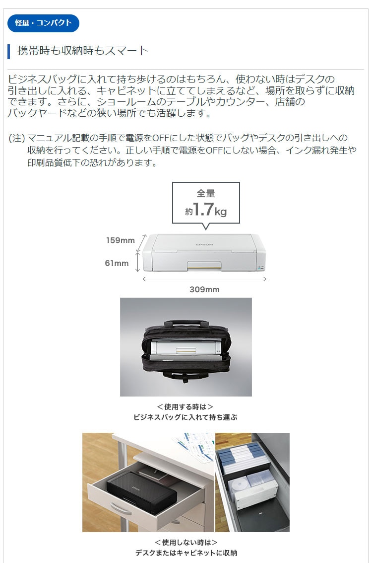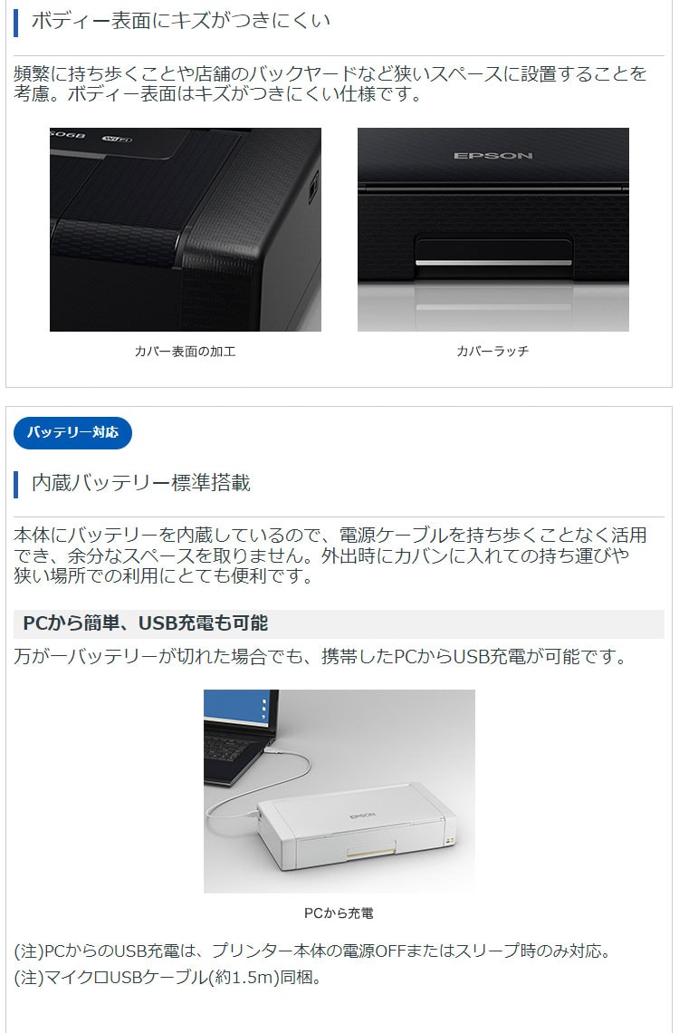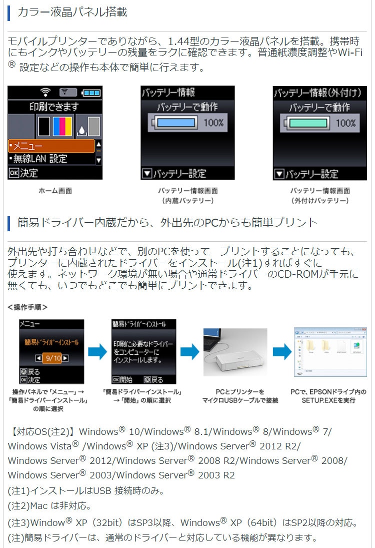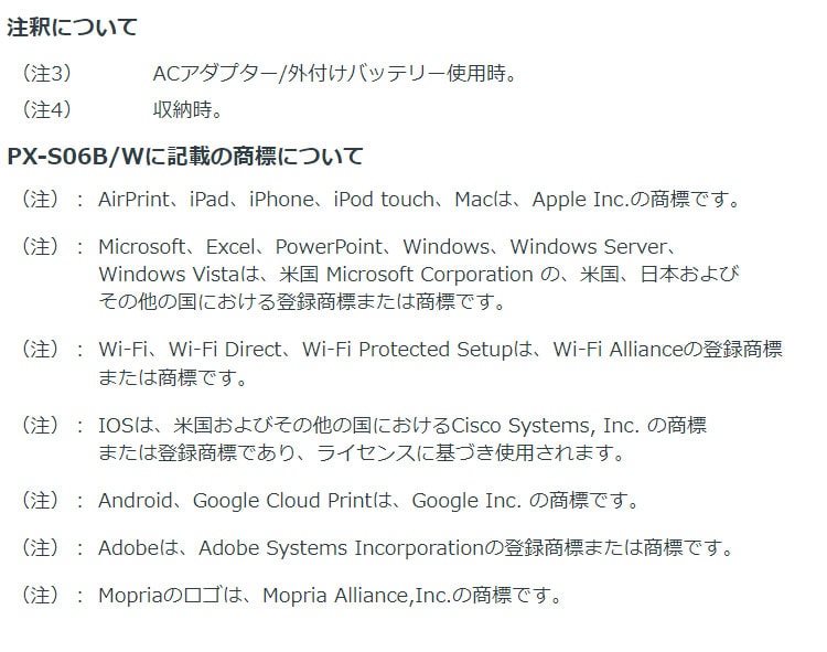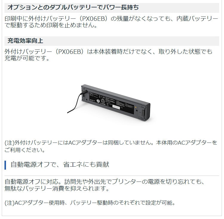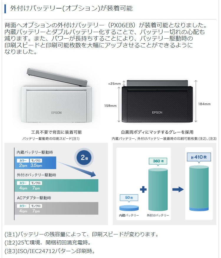 (注21)バッテリーの充電時間は目安。また、バッテリー駆動時の印刷枚数も目安であり、使用状況に応じて異なります(購入時の状態かつWi-Fi(R) 無効状態での測定結果)。