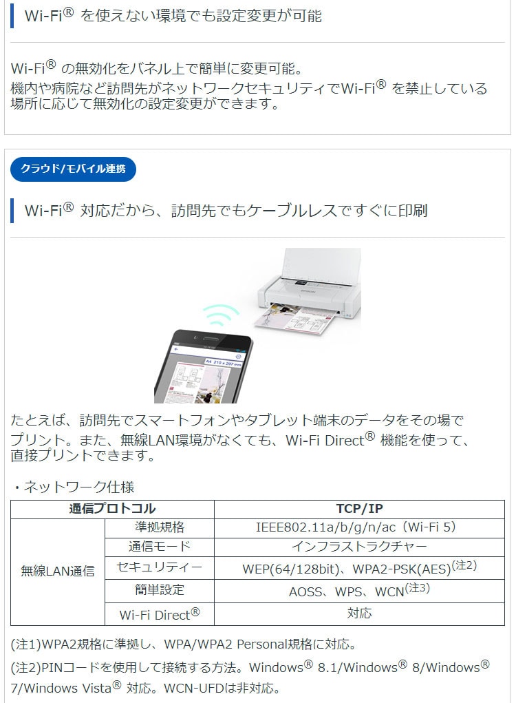 インターフェイスHi-Speed USB(注6)、IEEE 802.11a/b/g/n/ac(Wi-Fi 5)