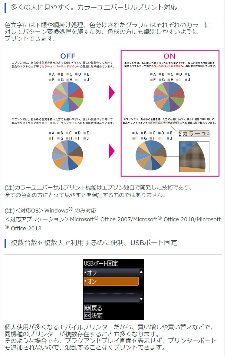 (注5)1枚目の印刷時間算出条件(レディー時からのFPOT算出条件):●測定基準:ISO/IEC17629●印刷用紙:A4普通紙●印刷品質:標準●ISO/IEC 24734"Office Category Test"の Microsoft(R) Word、Microsoft(R) Excel(R)、PDFファイル(各4ページ)の第1ページを指定して片面印刷したときの、印刷開始ボタンを押してから用紙排出までの時間を算出、各ファイルの印刷時間を平均換算した値。お客様がお使いのパソコン/アプリケーション/印刷データなどによって印刷スピードが変わります。