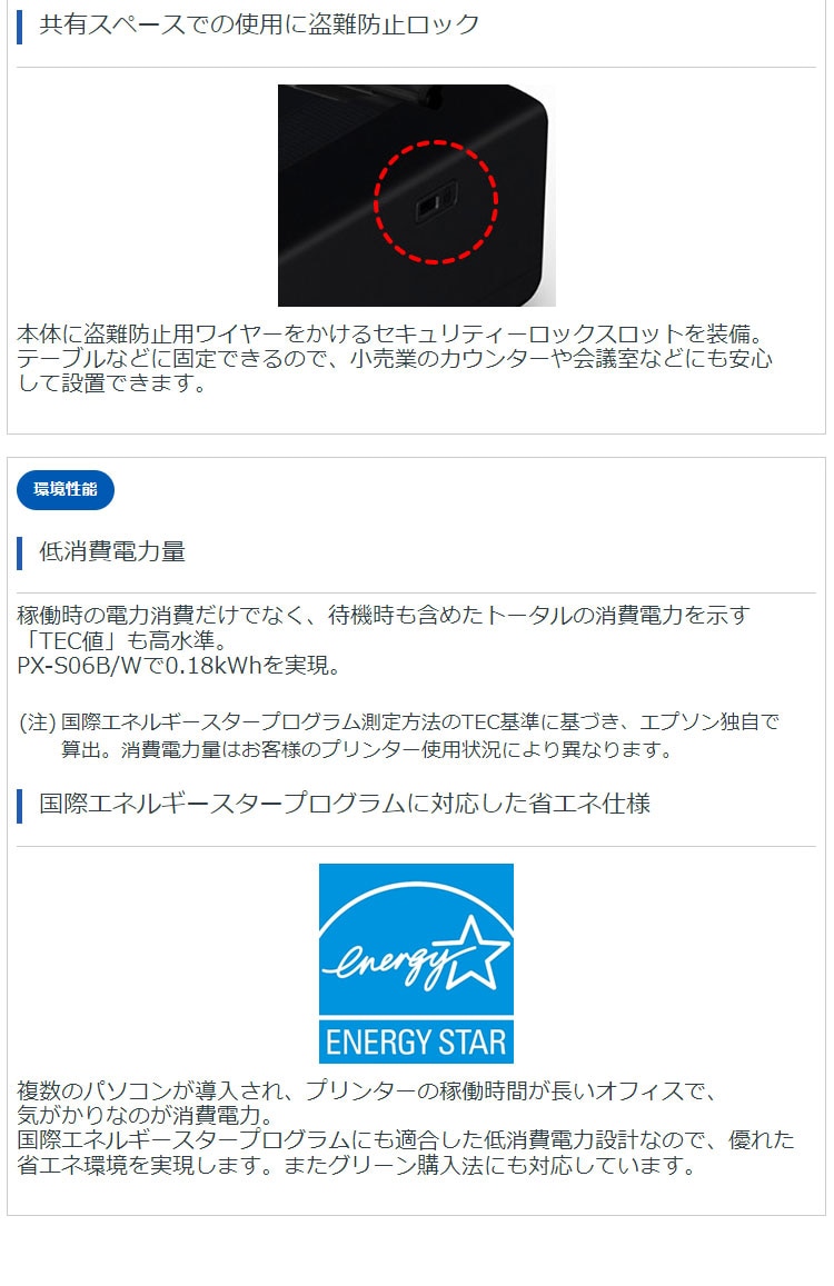 (注18)国際エネルギースタープログラム測定方法のTEC基準に基づき、エプソン独自で算出(測定条件はこちら)。消費電力量はお客様のプリンター使用状況により異なります。